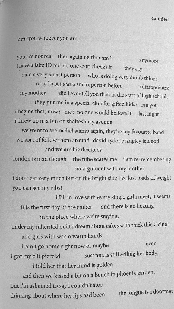 The language in the book is sublime and each piece has a formidable lyrical quality. Carmella’s use of free verse benefits the words on the page as does the rhyming structure achieved in the piece ‘Bury Me Deep’ which creates a river’s motion.