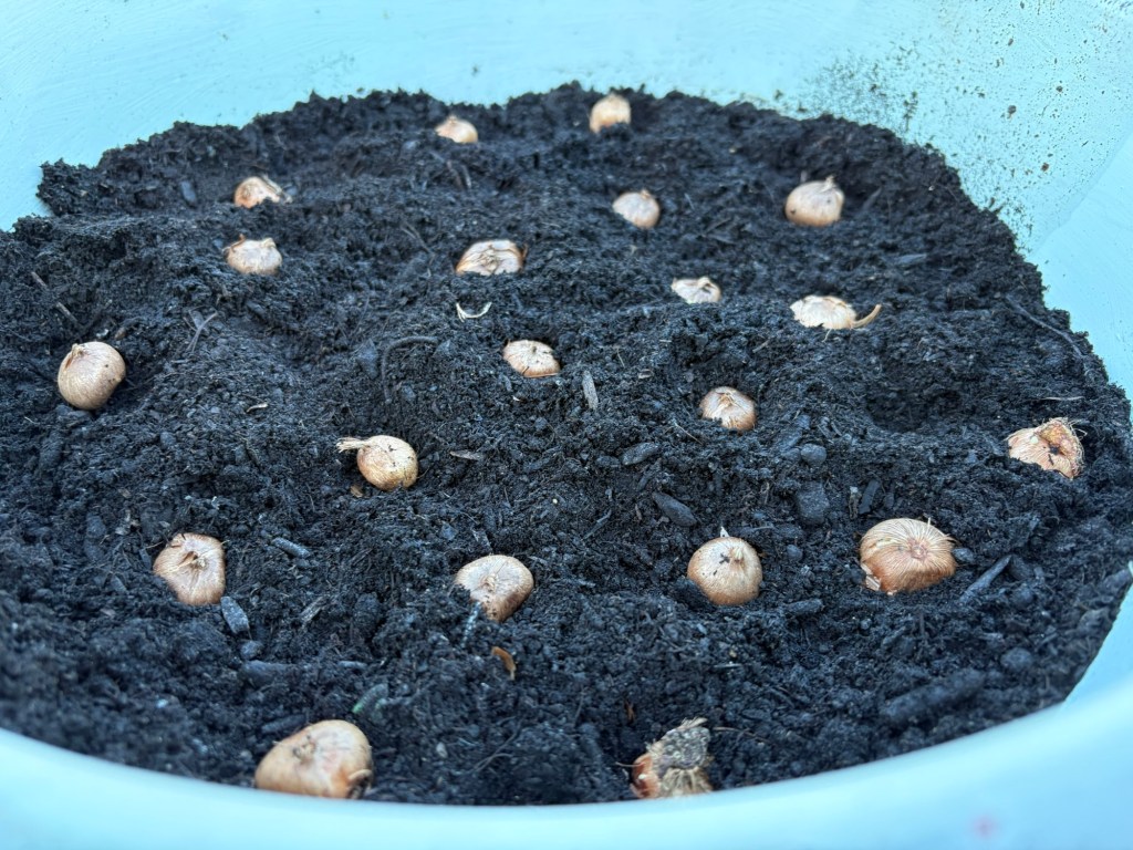 The allotment is taking proper shape now. We have spread woodchip over most of the ground for pathways. This will enrich the ground which will enrich our produce. Also, we’ve planted our fruit bushes in the cage, including a black raspberry which I’m looking to try.