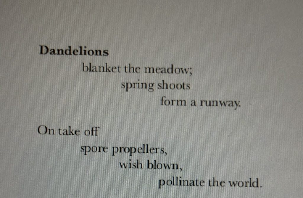 Nature is a focal point in the collection. ‘Early Summer Rain’ is a fine example of Karen’s ability to weave the domestic and the wild. ‘Dandelions’ is a perfect display of economy of language and the omnipotence and movement of the oft overlooked golden wildflower.