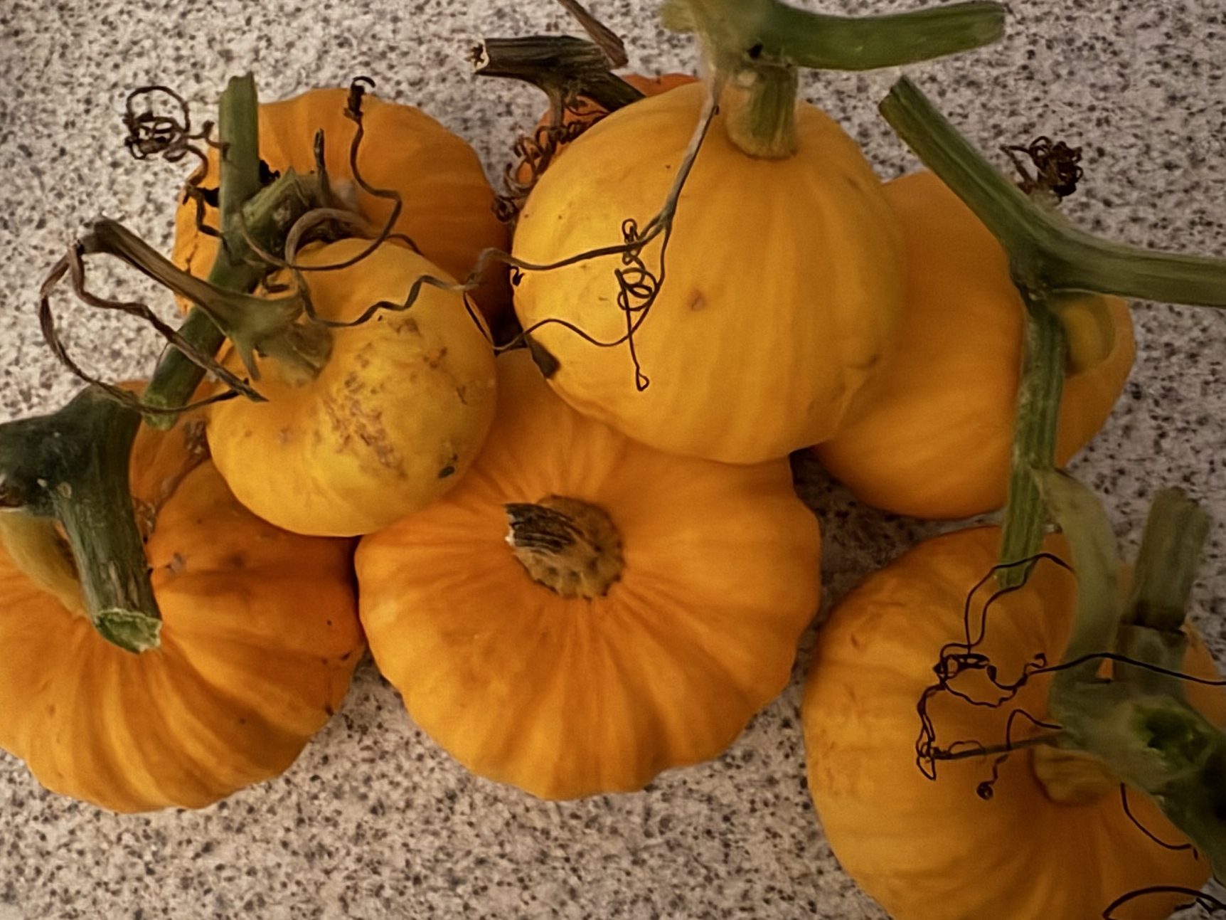Well the week started well and continued in the same vein. Sunday saw us head back to the allotment (and me saw down a rosemary tree that was starting to push onto the greenhouse) while the weather held off, then I attended the online launch of Merril D. Smith’s new collection, I signed a contract extension at work, saw some meteor action and I harvested our garden crop of Jack-be-little pumpkins.