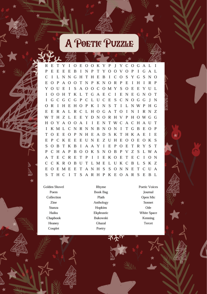 Here’s a gift for you all. Three festive poetry prompts to keep you busy.